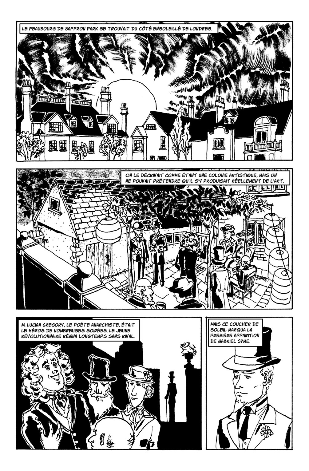 À l’origine, ce roman a été écrit par G. K. Chesterton et publié en 1908. Le texte intégral en anglais et une traduction en français de 1911 sont disponibles gratuitement puisque les droits sont échus. Par contre, cette publication est une nouvelle adaptation illustré et traduite par Philippe de Mestral. Les accrocs de la littérature et des bandes dessinées sont certains d’apprécier!